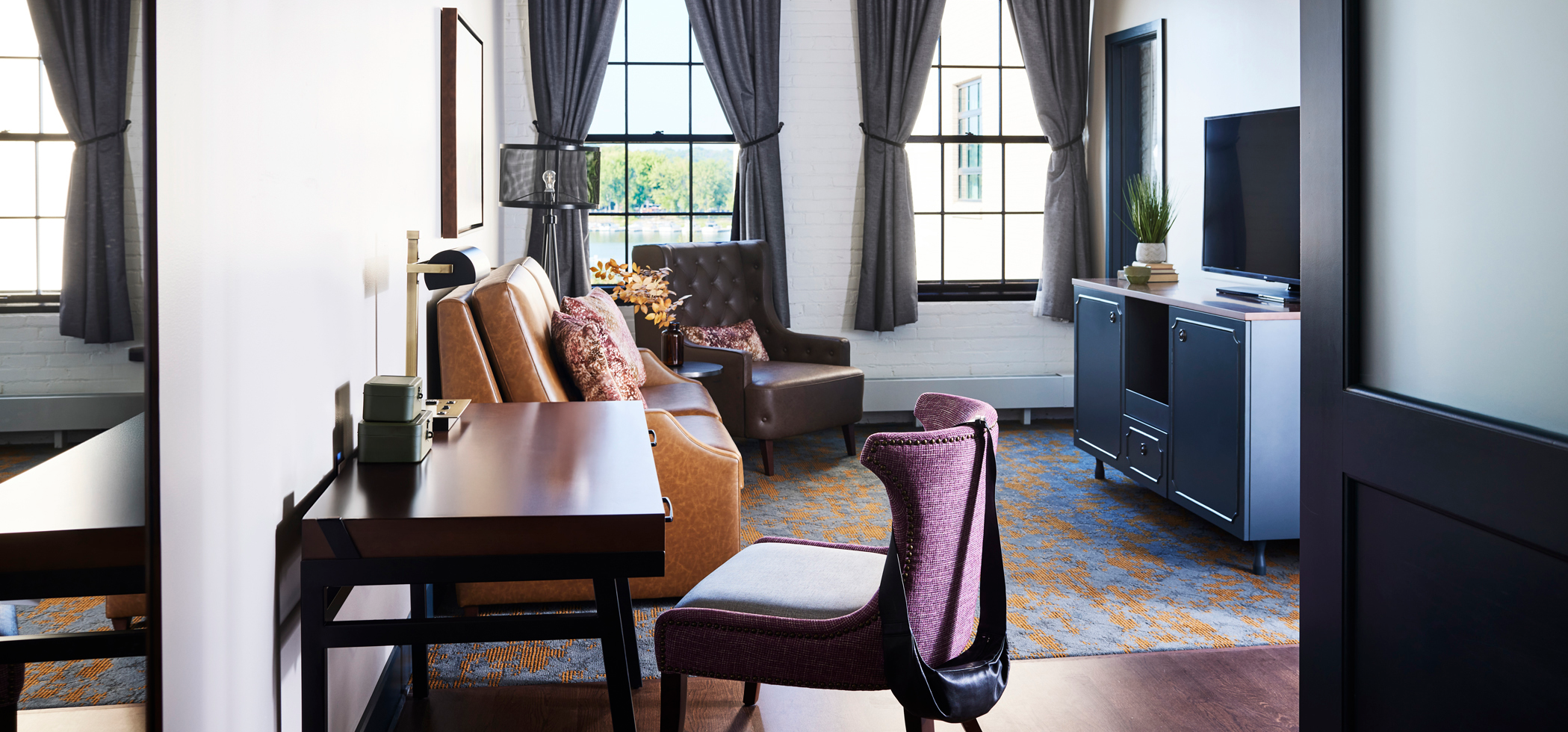 Set within a revitalized industrial building along the Mississippi River, The Confluence Hotel blends historic character with refined, modern design. The 77-room boutique property reflects the charm of Hastings — balancing agrarian heritage with an elevated downtown experience.